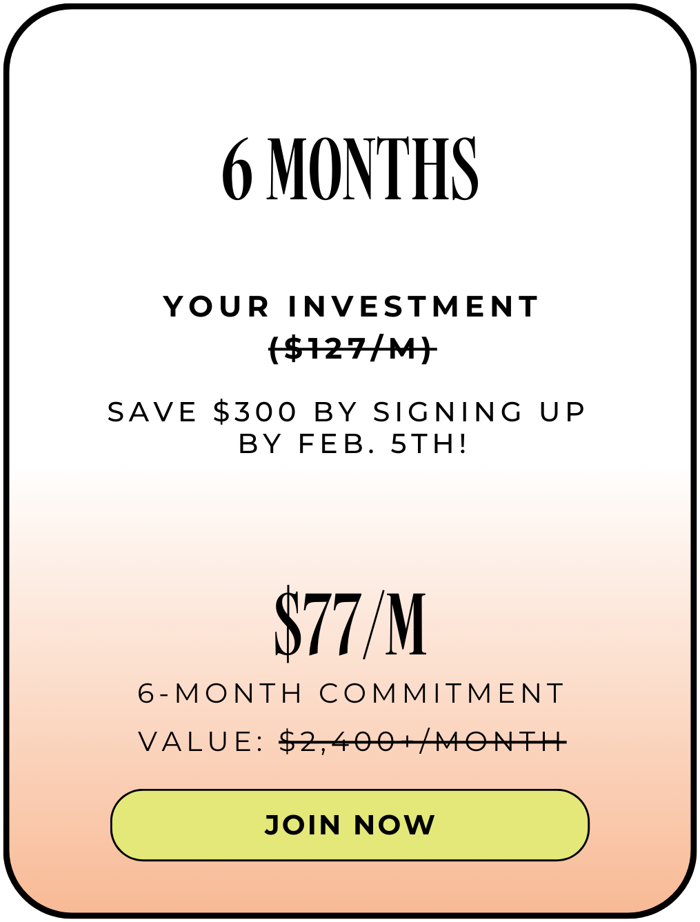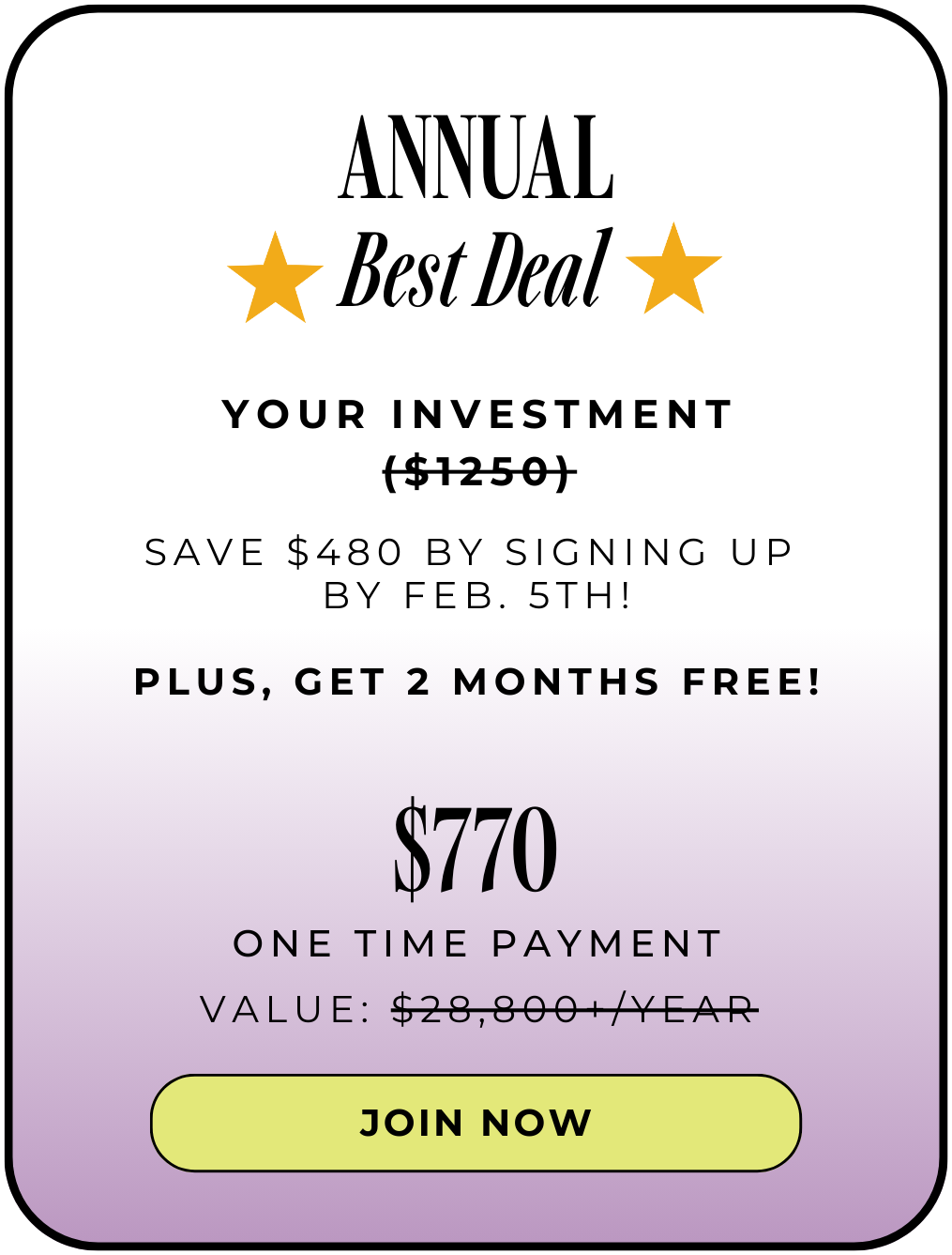 *Plus you’ll have exclusive access to 20% off 6 month intensive coaching with Madelyn (4 figures in savings!).